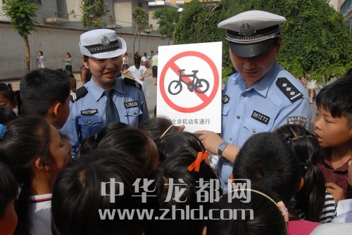 ????5月29日,七一交巡警大隊來到六一路小學,為小朋友們上了一堂內容豐富、形象生動的交通安全知識宣傳課并向學生們發(fā)放了《小學生交通安全手冊》。根據小學教育的特點,民警通過與學生們一起做游戲,寓教于樂,圍繞交通信號、指揮手勢、識別交通標志標線、文明行走、文明乘車等內容開展講解,引導小朋友們做到“紅燈停,綠燈行”。并借助生動活潑的宣傳圖片展示,圍繞交通安全常識開展互動競猜等容易接受的方式開展宣傳,為學生們上了一堂形象生動的交通安全課,引導其從小樹立文明交通意識。