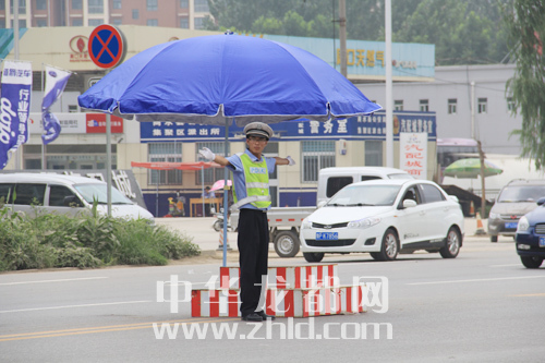 “天再熱,我們也要把交通指揮好。”7月22日12時(shí)30分,在中州大道寧洛高速路口附近,正在指揮交通的交警劉保兵對(duì)記者說。記者看到,汗水已經(jīng)浸透了他的衣背,藍(lán)色的制服由淺變深。