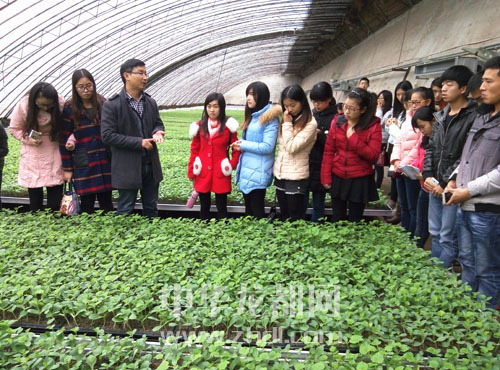 ????近年來,扶溝蔬菜研究院通過不懈努力,建設(shè)了各種設(shè)施蔬菜的棚型模式,成為了新品種示范展示基地、大學生實習基地。圖為河南農(nóng)大園藝學院的60名師生到該縣觀摩學習。