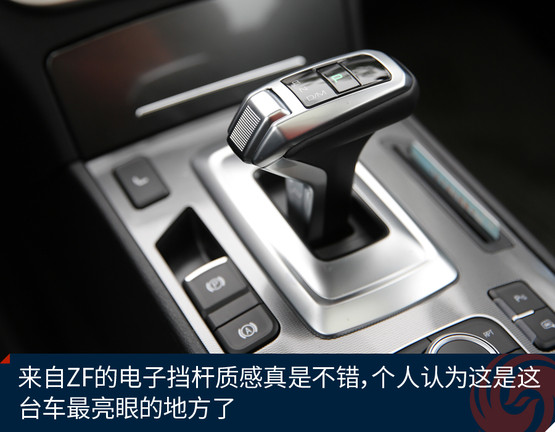 當然,這些東西同級別中或許都能看到,不算稀奇,如果說這臺車與藍標的最大區(qū)別,就得說儀表板中間的電子擋桿了,第一眼看到就被它的質(zhì)感吸引了,一點兒都不像在15萬這個級別中能看到的配置,與自家H2s一樣來自ZF的電子擋桿握感完美,操作方便,跟奧迪、寶馬等車的操作體驗沒什么區(qū)別。
