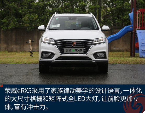榮威eRX5的外觀設計來自于上汽榮威家族最新的“律動設計”語言,整體外觀呈現(xiàn)出的是“鯨頭燕尾”的特點。通過車頭下壓、腰線勾勒、尾部內(nèi)切等設計,詮釋了“律動”的美學理念。與汽油版RX5相比,車頭的鍍鉻前格柵尺寸更加大,造型更為舒展,與大燈融為一體。eRX5基于RX5采用的SSA+平臺打造,提供了插電版與純電版兩個版本,這兩款車實際幾乎是同時開發(fā)的,尺寸方面更是一模一樣。插電版的eRX5車身兩側(cè)分別為加油口和充電口,純電動續(xù)航60公里,綜合續(xù)航650公里。車身隨處可見新能源的標識,并且還擁有新能源的專屬顏色銀葉金。