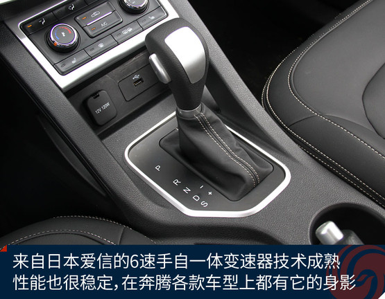 傳動(dòng)系統(tǒng)匹配的是日本愛(ài)信第三代6速手自一體變速器在奔騰各款車型中都有所應(yīng)用,響應(yīng)速度、換擋機(jī)制等方面的表現(xiàn)都比較成熟、均衡。