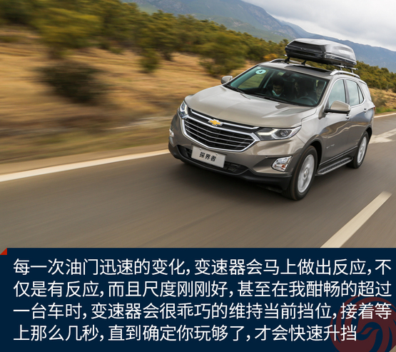 日常駕駛時(shí)的平順已讓我有些驚訝,而我進(jìn)一步試著去挑逗油門(mén)時(shí),探界者給了我更大的驚喜,每一次油門(mén)迅速的變化,變速器會(huì)馬上做出反應(yīng),不僅是有反應(yīng),而且尺度剛剛好,甚至在我酣暢的超過(guò)一臺(tái)車(chē)時(shí),變速器會(huì)很乖巧的維持當(dāng)前擋位,接著等上那么幾秒,直到你又安靜地做回美男子之后,才會(huì)快速的升到合適的擋位,這種高度的默契感是原來(lái)國(guó)產(chǎn)的雪佛蘭車(chē)上未曾見(jiàn)到的。