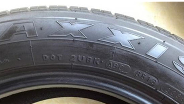 ????一般在輪胎的外側(cè)都有一串?dāng)?shù)字和字母,如下圖所示的數(shù)字“3813”,就是輪胎生產(chǎn)的日期,后兩位代表年份,也就是2013年,38表示輪胎是在13年的第38個(gè)周期生產(chǎn)的,也就是266天,共計(jì)8個(gè)月,所以輪胎是9分份生產(chǎn)的。