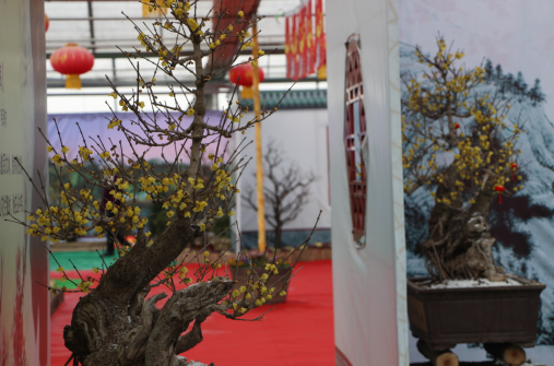 今天上午,大河客戶端記者在梅花展廳看到,不同品種的梅花被做成了盆景造型,配以雪花、茅屋、窗臺(tái)點(diǎn)綴,形成一道道獨(dú)特的景觀。怒放的花朵、含羞的花苞,數(shù)千平米的展廳內(nèi)香氣四溢,惹得游人如癡如醉。