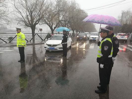 中華龍都網(wǎng)訊 (周口報(bào)業(yè)全媒體記者 侯俊豫 通訊員 王勇) 3月1日,淮陽(yáng)縣在羲皇賓館上午下午分別召開(kāi)全縣政法工作會(huì)議和紀(jì)檢監(jiān)察會(huì)議,參會(huì)人員分別達(dá)千余人。會(huì)議緊張進(jìn)行了一天,淅淅瀝瀝的小雨下了一天。負(fù)責(zé)道路保障任務(wù)的交警大隊(duì)城市中隊(duì)民警冒雨執(zhí)勤從黎明到天黑,交警真的成了“澆警”,但執(zhí)勤民警克服惡劣天氣的影響,圓滿(mǎn)完成了會(huì)場(chǎng)附近道路保障工作。
