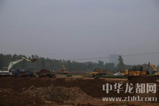 中華龍都網(wǎng)訊(周口報業(yè)全媒體記者 張勁松文/圖)4月21日上午,記者在東新區(qū)引黃調(diào)蓄施工現(xiàn)場了解到,截至目前,該項目已開挖土方79萬立方米,遷墳682座,伐樹21578棵。當日上午9時許,記者在施工現(xiàn)場看到,大型挖掘機、翻斗車把挖出的黃土拉向湖岸的位置。推土機轟鳴著在平整場地,酒水車在整個施工現(xiàn)場來回不停地奔跑降塵,整個施工現(xiàn)場60余臺機械來往穿梭,湖的雛形正在形成,湖的面積逐漸“長”大,北岸湖堤也在逐漸隆起。