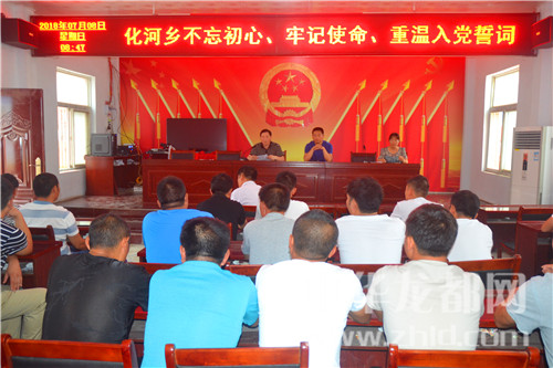 中華龍都網訊(周口報業(yè)全媒體記者 付永奇 通訊員 張長河)7月8日上午,化河鄉(xiāng)黨委在鄉(xiāng)政府會議室舉行“不忘初心、牢記使命”重溫入黨誓詞儀式。今年轉為正式黨員的高四峰、夏秋雨等19名新黨員和李俊領、史學濤等22名預備黨員參加了此次儀式。儀式由鄉(xiāng)黨委書記高永強主持,黨委副書記、政府鄉(xiāng)長賈洪濤、組織委員許艷等出席。