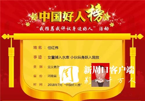 7月30日,中央文明辦全國道德模范與身邊好人現(xiàn)場(chǎng)交流活動(dòng)在長春舉行,現(xiàn)場(chǎng)發(fā)布了7月“中國好人榜”,太康縣任紅偉光榮入選7月份見義勇為類中國好人榜。目前,太康縣入選中國好人榜人數(shù)已達(dá)39人。