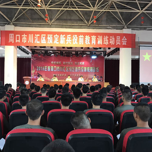 8月17日上午,川匯區(qū)預(yù)定新兵役前教育訓(xùn)練動員會在位于蓮花路西段的奔騰小學(xué)召開。周口軍分區(qū)副司令員薛振喜,區(qū)長李宗喜,區(qū)人武部部長陳繼芳、政委高新傳出席會議。