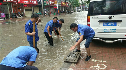 城市排澇保暢通。城管、交警等部門做好城市交通秩序和排澇工作。該縣《預案》特別對城市防汛提出詳細部署,特別是城管、交警在暴雨中從未停歇,一直在從事保暢通、疏堵排澇工作,許多市民感動不已,并積極參與到排澇工作隊伍中來。