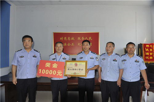 殷殷勉勵鼓士氣,濃濃關(guān)愛暖警心。8月22日,鹿邑縣公安局政委任金瑞帶領(lǐng)政工部門負(fù)責(zé)人深入基層一線,為榮立集體三等功的鹿邑縣拘留所和榮獲個(gè)人嘉獎的任集派出所指導(dǎo)員姚坤送去獎?wù)?、證書和獎金。