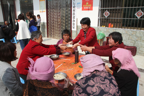秋渠鄉(xiāng)、城郊鄉(xiāng)分別為敬老院的老人們送去了米、面、油、蘋果、桔子等豐富的節(jié)日禮物,鄉(xiāng)村干部分別和五保老人共進午餐,讓老人深深地感受到黨的溫暖。