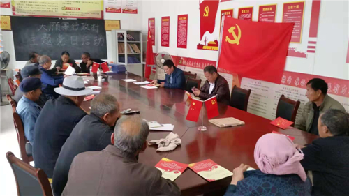 “我志愿加入中國共產(chǎn)黨,擁護(hù)黨的綱領(lǐng),遵守黨的章程,履行黨員義務(wù)……”在汲水鄉(xiāng)張嶺行政村室,汲水鄉(xiāng)黨委副書記王申帶領(lǐng)全體黨員面對黨旗,一起重溫入黨誓詞,并學(xué)習(xí)黨章黨規(guī)。