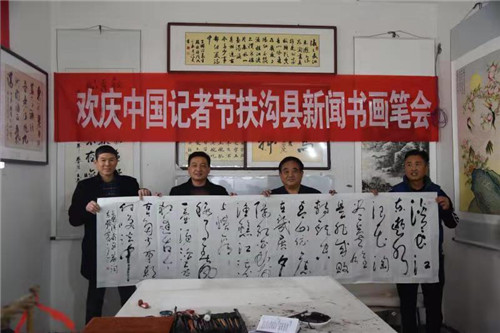 筆墨寫(xiě)春秋,重彩頌佳節(jié)。為慶祝第19個(gè)中國(guó)記者節(jié),在扶溝縣的張坡詩(shī)詞名人書(shū)畫(huà)館,來(lái)自省書(shū)法家協(xié)會(huì)的書(shū)法家與當(dāng)?shù)匦侣勑麄鞑块T(mén)的書(shū)畫(huà)愛(ài)好者們齊聚一堂,以舉行書(shū)畫(huà)筆會(huì)的形式向新聞媒體人慶賀節(jié)日。