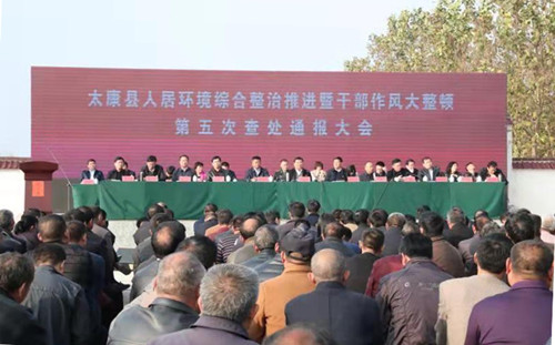 11月9日,太康縣人居環(huán)境綜合整治推進(jìn)會(huì)暨干部作風(fēng)整頓第五次查處通報(bào)大會(huì)在該縣城郊鄉(xiāng)池莊行政村召開。王國(guó)璽、李錫勇、王程清、張思民、王建林等縣四個(gè)班子領(lǐng)導(dǎo)、市脫貧攻堅(jiān)第四督查巡查組組長(zhǎng)李煒和縣副處級(jí)以上領(lǐng)導(dǎo)及該縣縣直、各鄉(xiāng)鎮(zhèn)負(fù)責(zé)人參加會(huì)議。會(huì)議由縣委副書記、政法委書記王程清主持??h委書記王國(guó)璽指出,人居環(huán)境綜合整治是鄉(xiāng)村振興的基礎(chǔ)工程、是脫貧摘帽的形象工程、是環(huán)保攻堅(jiān)的保障工程、是農(nóng)村生活的清潔工程、是執(zhí)政能力的標(biāo)志工程,必須抓好抓實(shí)。