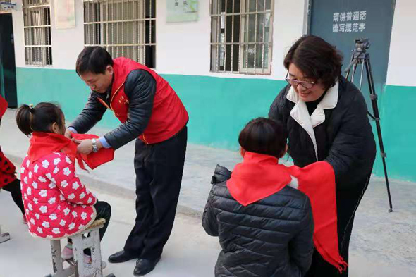 隨后,周口助夢公益團負責人王凱偉和清集鎮(zhèn)中心校校長王錦枝等人為公益團向楊莊小學捐建的“助夢愛心書屋”進行了揭牌。揭牌儀式后,王凱偉為師生們講解了交通安全知識,周口平安公司張敏團隊的志愿者們帶領學生們表演了勵志手語舞蹈《感恩的心》,民間網絡歌手韓留所為大家奉獻了《草原上升起不落的太陽》、《最美的歌唱給媽媽》等,贏得了師生們的陣陣掌聲和喝彩。