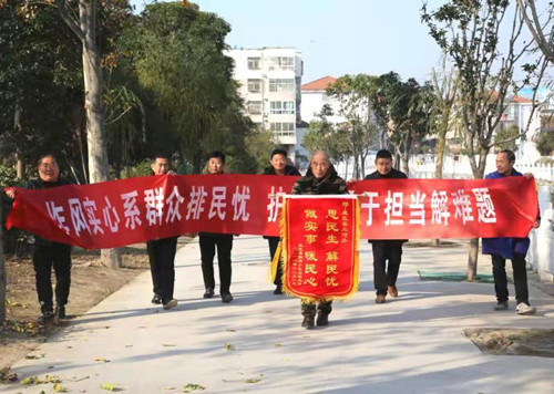 12月9日,來自鹿邑徐小橋社區(qū)的居民將一面繡有“思民生 解民憂 做實事 暖民心”的錦旗和"作風實心系群眾排民憂 ,護五河勇于擔當解難題"條幅送到鹿邑縣五河辦王力主任手中,感謝他們破解困擾居民多年的“內(nèi)澇”難題。