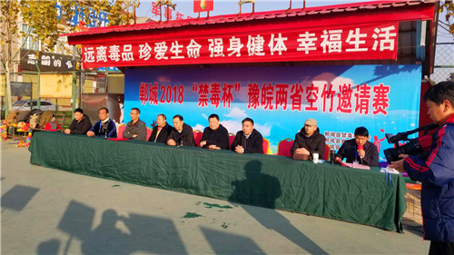 在鄲城縣世紀廣場舉辦禁毒杯豫皖兩省空竹邀請賽,來自我省和安徽省的空竹愛好者們紛紛展示了空竹技藝,參與人員和觀眾在欣賞精彩空竹表演的同時,又得到了禁毒宣傳教育。