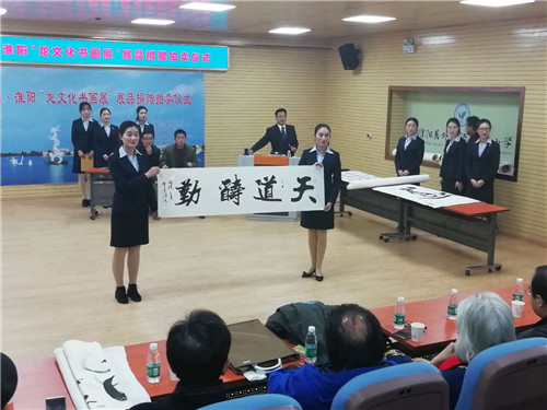 學(xué)術(shù)年會系列活動除總結(jié)2018年研究會工作,安排下一年度工作外,還舉辦羲城遺址考察及學(xué)術(shù)研討會、龍文化書畫作品展和書畫扶貧義賣助力淮陽文藝事業(yè)發(fā)展和脫貧扶貧等活動。