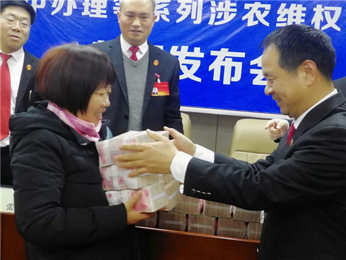 “感謝項城法院的領導,他們一心為民,克服種種困難,幫助我們要回了血汗錢?!?2月24日,項城法院拖欠農(nóng)民工工資案件集中辦理等系列涉農(nóng)維權活動新聞發(fā)布會在該院召開,16名涉農(nóng)維權案件當事人從項城法院黨組成員、院長張永波的手中接過索要許久的血汗錢,喜極而泣。