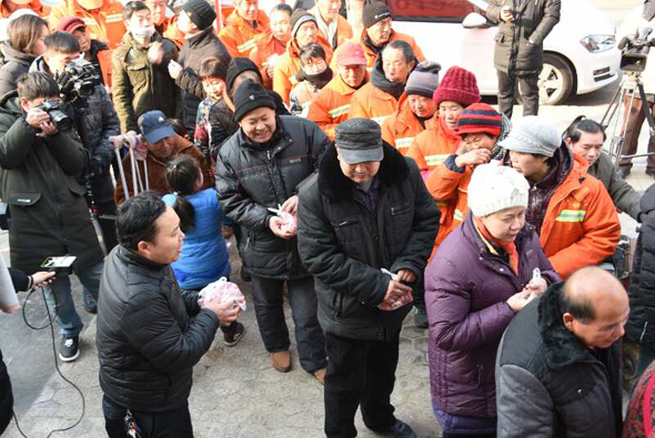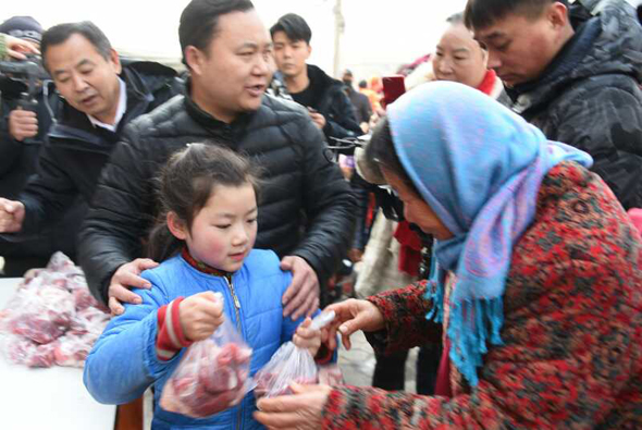 小小燒烤店門前,成了倡導“愛與奉獻主會場”。 2019年1月1日上午10點,新年第一天,鄭州市國基路與豐慶路交叉口太康烤全羊店門口,60多名環(huán)衛(wèi)工、殘疾人、困難群眾等弱勢群體聚集在這里,排隊免費領(lǐng)取“羊肉哥”孫合理和妻子劉曉愛派送的一份新年禮物——愛心羊肉,而這愛舉從2010年元旦開始到如今,已經(jīng)堅持了9年。