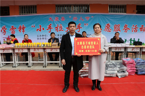 上午9時10分,隨著兩名小主持人婁婷涵和許家輝走上舞臺,太康縣“好人節(jié)”暨學雷鋒“小手拉大手”志愿服務活動”活動正式拉開序幕。舞臺上,精彩的武術表演、優(yōu)美的歌曲、舞蹈、動人的勵志手語舞等節(jié)目,讓觀眾大飽眼福,贊嘆不已。同時,該縣萬城壹家人團隊還為新店鋪小學的學生們帶來了106套、價值2萬余元的新校服,以及多套組合衣柜。
