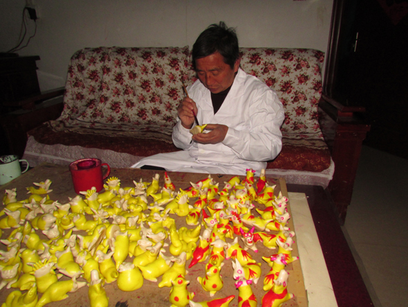 接到參加中國(淮陽)“非遺”展演的邀請后,顧家饃非遺傳承人陳志剛近日忙個不停,努力制作出精美的顧家饃,為宣傳“非遺”文化貢獻(xiàn)力量。圖為陳志剛在給動物造型的顧家饃著色。記者 田孝臣 通訊員 盧振 攝