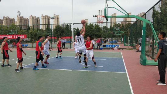 5月20日,在市體育中心籃球場,市直機關第三屆職工運動會籃球比賽正在激烈進行。