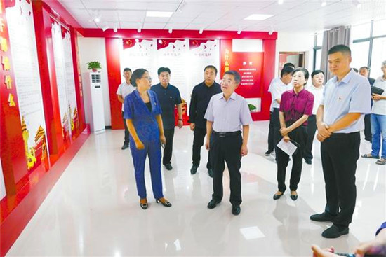 皇甫立新首先來到槐店回族鎮(zhèn)海樓社區(qū)。海樓社區(qū)位于縣城中心,是全縣政治經(jīng)濟(jì)文化中心。走進(jìn)社區(qū),路兩旁紅旗飄飄,新時(shí)代、新思想、新目標(biāo)、新征程等具有時(shí)代特色的宣傳畫繪制在兩邊的墻壁上。社區(qū)廣場(chǎng)上“百村綜合治理辦公室”的牌子特別醒目,社區(qū)辦公室有關(guān)百村綜合治理的規(guī)章制度一應(yīng)俱全。皇甫立新對(duì)海樓社區(qū)的工作給予充分肯定,并就工作中存在的問題給予指正,要求社區(qū)黨支部突出建好、管好、用好村委黨員會(huì)議室,突出主題,唱響主旋律。