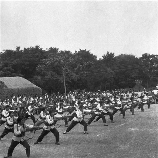 全民皆兵作為貫穿在毛澤東時(shí)代的一個(gè)最具中國特點(diǎn)的社會(huì)景觀,留下了許多值得回味的畫面。廣大農(nóng)民和工人亦兵亦民、亦工亦兵,拿起鋤頭是莊稼漢,走進(jìn)車間是工人,拿起槍桿就是一個(gè)兵。民兵訓(xùn)練在正規(guī)軍人的指導(dǎo)下利用農(nóng)閑時(shí)間,采取小型、就地、分散的方法進(jìn)行,主要訓(xùn)練課目有隊(duì)列、刺殺、步槍射擊、投手榴彈、簡易單兵戰(zhàn)術(shù)、站崗放哨等。
