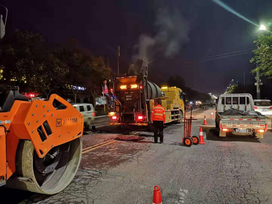 9月20日晚,記者在八一大道北段看到,道路綜合養(yǎng)護(hù)車、壓路機(jī)、運(yùn)輸車、圓周切割機(jī)等車輛和設(shè)備早已到位,市政工人正在施工(如圖)。從切割路面到恢復(fù)通車,一段路不到兩個(gè)小時(shí)就完成了任務(wù)。從外觀看,新更換的窨井蓋與以前的并無(wú)明顯差別。