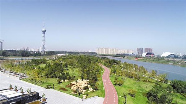 據(jù)了解,沙潁河公園一期總投資19.3億元,西起周口大道,東至武盛大道,全長5.5公里,建設內(nèi)容主要是景觀工程、堤防工程、河道護砌工程、道路工程。南北兩岸景觀總面積211公頃,其中綠化面積172公頃,硬化面積39公頃,綠地率81.5%,單側景觀最寬處500米,最窄處100米,栽植各種喬木、灌木、應季花草、草皮等,實現(xiàn)三季有花、四季常青。