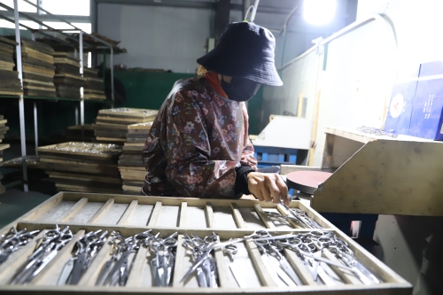 “我也是從小就外出,一直在江蘇蘇州發(fā)展,做刀剪十幾年了?,F(xiàn)在家鄉(xiāng)環(huán)境好,回來(lái)發(fā)展比在南方還有前途?!苯衲?9歲的陳政治老家是虎崗鄉(xiāng)陳莊村。被虎崗鄉(xiāng)黨委政府的誠(chéng)意所感動(dòng),他很樂(lè)意回鄉(xiāng)發(fā)展,因?yàn)榉孔鈨r(jià)格低、務(wù)工人員穩(wěn)定,營(yíng)商環(huán)境又好,所以他帶著自己的外甥楊亞杰和技術(shù)團(tuán)隊(duì)回到老家鄲城,還能助力家鄉(xiāng)經(jīng)濟(jì)發(fā)展。陳政治說(shuō),他的廠子所生產(chǎn)的東升、jack、亞寶等品牌刀剪全部銷往全國(guó)高檔理發(fā)店,產(chǎn)品供不應(yīng)求。像這樣的高檔刀剪生產(chǎn)廠家,在中原地帶極少。剛投產(chǎn)幾個(gè)月,他已經(jīng)接到了來(lái)自韓國(guó)、日本等地的訂單。