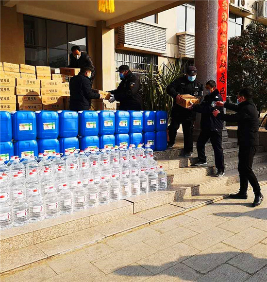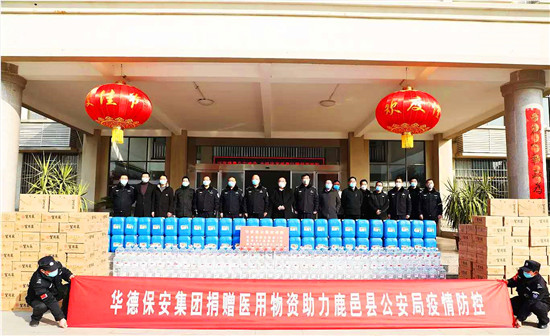 2月9日,一輛掛著“華德保安集團(tuán)捐贈醫(yī)用物資助力鹿邑縣公安局疫情防控”載著滿滿醫(yī)用物資的貨車,從門口趕來停在鹿邑縣公安局大院里。