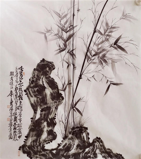 最近,懷章先生送我一幅新創(chuàng)作的竹石圖裝點(diǎn)陋室。送去琉璃廠裝裱做框,裱畫師傅看到這幅畫,眼睛一下就亮了:這個(gè)畫,真好!看落款就知道有功夫。