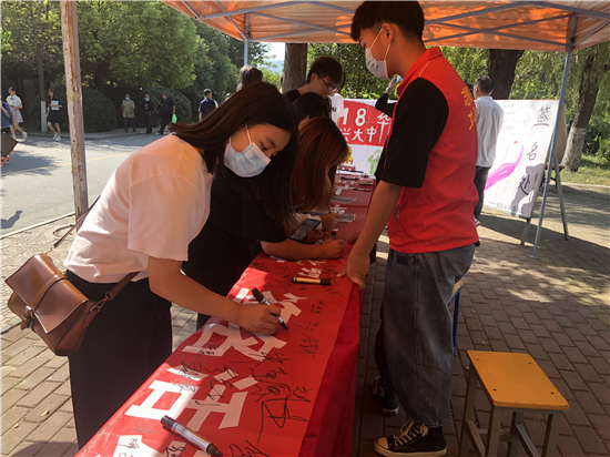 活動結(jié)束后,同學(xué)們紛紛表示,要堅定擁護中國共產(chǎn)黨的領(lǐng)導(dǎo),勤奮學(xué)習(xí)、嚴于律己,用實際行動肩負起實現(xiàn)中華民族偉大復(fù)興的歷史重任。圖為學(xué)生進行簽名。