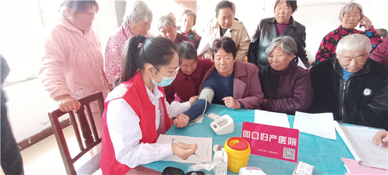 2020年第11個(gè)全國(guó)“敬老月”和第八個(gè)“老年節(jié)”,團(tuán)市委聯(lián)合周口婦產(chǎn)醫(yī)院走進(jìn)西華縣李方口村開展敬老愛心義診活動(dòng)。圖為義診現(xiàn)場(chǎng)。(記者 馬月紅 攝)