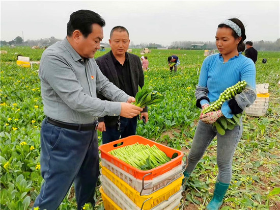 在張集鎮(zhèn)景鴻蔬菜種植基地,王國(guó)璽與正在干活的群眾親切交談,進(jìn)菜地、看長(zhǎng)勢(shì)、問(wèn)產(chǎn)量,詳細(xì)了解產(chǎn)業(yè)規(guī)劃建設(shè)、政策落實(shí)、發(fā)展規(guī)模、運(yùn)營(yíng)模式、產(chǎn)品銷路、帶貧成效等具體做法和經(jīng)驗(yàn)。王國(guó)璽指出,在疫情防控常態(tài)化下,鄉(xiāng)賢有效利用資本市場(chǎng),與家鄉(xiāng)勞動(dòng)力資源、土地資源有效銜接,發(fā)揮產(chǎn)品優(yōu)勢(shì),增加群眾收入,鞏固了脫貧成果,為鄉(xiāng)村振興打下了堅(jiān)實(shí)基礎(chǔ),要做好宣傳推廣和經(jīng)驗(yàn)總結(jié)。