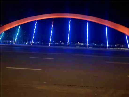 沿流沙河風(fēng)景帶一路東行,沿河步道蜿蜒曲折,微地形高低錯(cuò)落,兩側(cè)栽下香樟、槐樹(shù)、雪松、石楠等不少喬灌木,碧桃、櫻花等彩色樹(shù)種夾雜其間,營(yíng)造河岸飄渺悠揚(yáng)的意境。為抵御寒冬,趕在大范圍降溫前,不少樹(shù)木已經(jīng)提前穿上了抵御寒冬的“保暖衣”。一路走來(lái),休閑廣場(chǎng)、公廁、觀景臺(tái)……原本狹窄的河道成了恬靜的休閑漫步區(qū)。不知不覺(jué)夜幕降臨,廣場(chǎng)上熱鬧起來(lái),盡管天氣嚴(yán)寒,卻絲毫抵擋不住人們出門(mén)鍛煉的熱情,橋上的彩色裝飾燈亮起,橋梁橫跨南北猶如飛虹,河流宛若玉帶,舉目遠(yuǎn)眺,燈火輝煌,一派迷人景象。