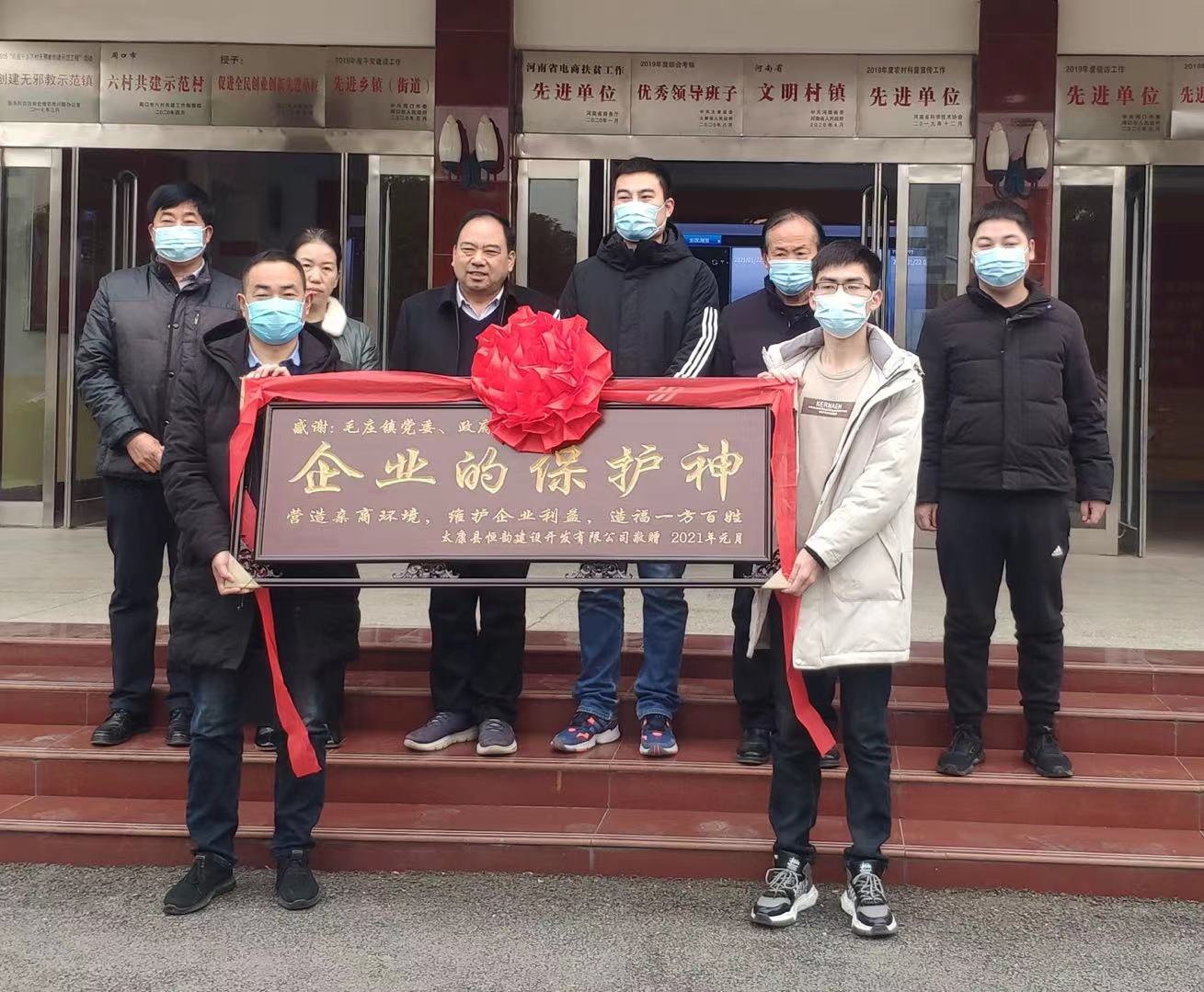 1月22日上午,太康縣毛莊鎮(zhèn)政府大門(mén)前人頭攢動(dòng),人聲鼎沸。在眾人的嘖嘖稱(chēng)贊中一塊鐫刻著“企業(yè)的保護(hù)神”的牌匾被遞交到該鎮(zhèn)工作人員手中。