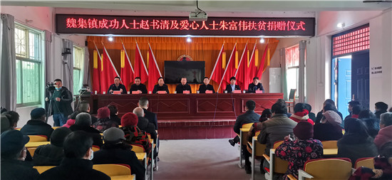 1月29日,天氣乍暖還寒,魏集鎮(zhèn)政府人頭攢動,喜氣洋洋,一片熱鬧的景象。內(nèi)蒙古希拉穆仁旅游置業(yè)開發(fā)有限公司董事長、內(nèi)蒙古楊子照明鋼桿制造有限責(zé)任公司董事長、內(nèi)蒙古周口商會會長趙書清和愛心人士朱富偉一行,帶著整整兩卡車米、面、油共計(jì)八萬元生活物資,回到家鄉(xiāng)魏集鎮(zhèn)開展扶貧濟(jì)困活動,在嚴(yán)寒的冬日給魏集鎮(zhèn)困難群眾帶來了溫暖和祝福??h政協(xié)主席孫培忠,縣委常委、宣傳部長李本磊出席活動。魏集鎮(zhèn)黨委書記衛(wèi)春忙,鎮(zhèn)長劉艷光參加活動。