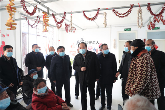 太康縣大許寨格花里行政村居村聯養(yǎng)點占地5畝,入住特困老人80余人,社會留守老人3人,老人們在這里有吃有穿還有娛樂活動,生活得十分幸福。徐濟超一行走進大許寨鎮(zhèn)葛花李居村聯養(yǎng)點,向老人們祝賀新春。徐濟超指出,各級各部門要始終堅持以人民為中心的發(fā)展思想,踐行初心使命,聚焦群眾冷暖,用足用好惠民政策,千方百計幫助群眾解決實際問題,讓群眾老有所養(yǎng)、病有所醫(yī)、住有所居,讓大家共享改革發(fā)展成果,確保讓廣大群眾過個歡樂祥和的新春佳節(jié)。