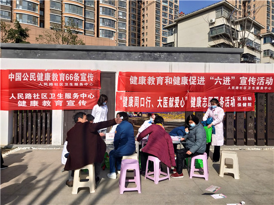 3月2日下午,在大慶路與七一路交叉口東北角的街頭游園內(nèi),人民路社區(qū)衛(wèi)生服務(wù)中心在這里開展健康教育和健康促進(jìn)“六進(jìn)”宣傳活動(dòng)?;顒?dòng)現(xiàn)場(chǎng),量血壓、測(cè)血糖、免費(fèi)體檢等服務(wù),讓周邊居民體會(huì)到滿滿的關(guān)懷。