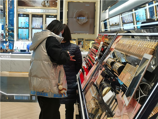“精致的生活需要儀式感,把自己打扮得漂漂亮亮的,是對(duì)自己的關(guān)愛(ài)?!痹谝簧虉?chǎng)的化妝品專(zhuān)柜前,一對(duì)正在選購(gòu)化妝品的母女說(shuō)。