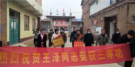 太康縣龍曲鎮(zhèn)的4名現(xiàn)役軍人在部隊(duì)榮立“三等功”,日前,太康縣龍曲鎮(zhèn)退伍軍人服務(wù)站站長(zhǎng)、市人大代表劉志華在太康縣軍人事務(wù)局領(lǐng)導(dǎo)的帶領(lǐng)下,吹著嗩吶、打著腰鼓、扯著橫幅,把立功喜報(bào)和慰問(wèn)金,送到龍曲鎮(zhèn)張山行政村張鵬舉、黑李王行政村丁帥龍、軒莊行政村師行光、河坡行政村王澤家中,營(yíng)造了一人當(dāng)兵、全家光榮的風(fēng)尚,堅(jiān)定了軍人建功立業(yè)的信心。