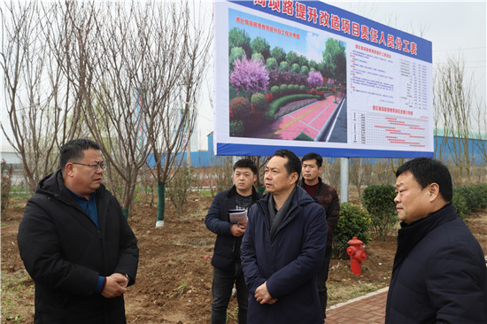 為督導(dǎo)綠化建設(shè)工作落實情況,推進綠化建設(shè)工程進度,3月11日,周口港區(qū)管委會主任程若光率隊到轄區(qū)各綠化建設(shè)項目地點實地督導(dǎo)檢查,并召開工作推進會,對該項工作做進一步安排部署。港區(qū)黨委委員、管委會副主任李翔及項目責(zé)任單位、施工單位負(fù)責(zé)人參加。