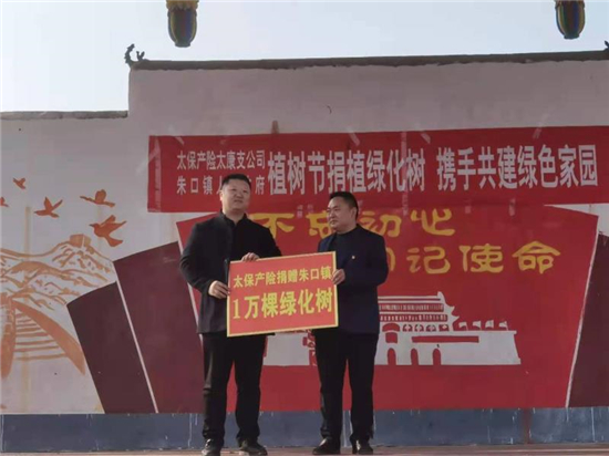 “這楸樹作為行道綠化,真不賴,現(xiàn)在栽上澆點水就能活……”在太康縣朱口鎮(zhèn)周寨村參加捐贈儀式的洼陳村村民代表張紅飛說。3月12日,植樹節(jié)當日,太康縣朱口鎮(zhèn)與太平洋保險財產(chǎn)保險公司周口支公司在周寨村舉行了“植樹節(jié)捐植綠化樹,攜手共建綠色家園活動”,太平洋保險財產(chǎn)保險公司為朱口鎮(zhèn)捐贈綠化樹10000棵,助力朱口鎮(zhèn)建設(shè)綠色家園。太平洋保險公司周口支公司總監(jiān)豆威、總經(jīng)理趙磊和鎮(zhèn)長江海洋等出席了會議,全鎮(zhèn)52個村黨支部書記、100多名群眾代表參加了會議。