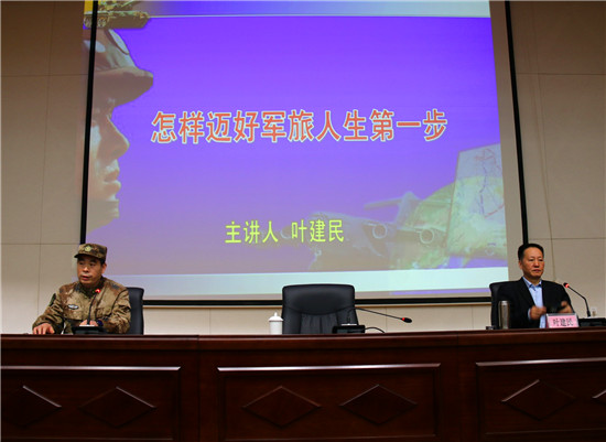 授課中,葉建民教授結(jié)合當(dāng)前國(guó)際國(guó)內(nèi)形勢(shì)和自身經(jīng)歷,深刻剖析了強(qiáng)國(guó)強(qiáng)軍的重要意義。為即將參軍入伍的“準(zhǔn)新兵”,如何端正入伍動(dòng)機(jī)、適應(yīng)部隊(duì)生活、弘揚(yáng)尚武精神、立志軍營(yíng)建功立業(yè),指明了前進(jìn)方向。葉教授整個(gè)授課見解獨(dú)到、分析透徹,語言精彩、內(nèi)涵深刻,讓人深受啟發(fā)、獲益匪淺,授課過程中多次爆發(fā)熱烈的掌聲。