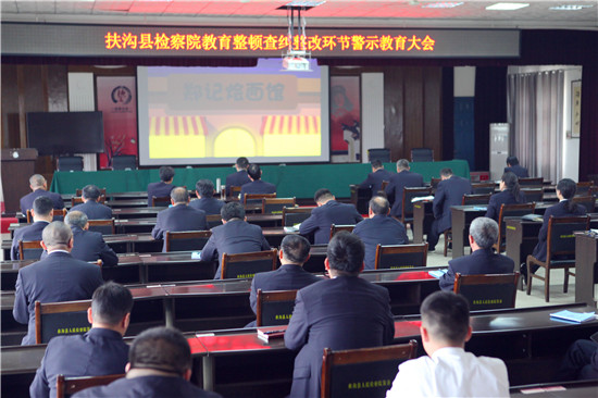 為推動政法隊(duì)伍教育整頓工作穩(wěn)步開展,扶溝縣檢察院堅(jiān)持教育先導(dǎo),思想發(fā)動,通過開展警示教育活動,為查糾整改環(huán)節(jié)打好思想基礎(chǔ)。4月14日下午,扶溝縣檢察院組織全體干警集中觀看了《記憶中的燴面》《法不容私》《“保護(hù)傘”自身難保,“坐地虎”坐進(jìn)監(jiān)牢》三部警示教育片,充分發(fā)揮以案說法說紀(jì)和警示震懾作用,教育引導(dǎo)干警增強(qiáng)紀(jì)律觀念和規(guī)矩意識,心存敬畏之心,筑牢拒腐防變思想防線。